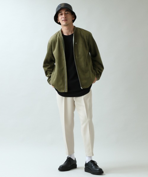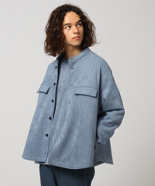 こちらのジャケットは、小松マテーレ社のコマスエードという素材が使われています。ソフトな肌触りが心地よく、ストレッチが効いているので動きやすさも抜群ですよ。ゆったりめのシルエットなので、シャツやニットのレイヤードコーデを楽しむのもおすすめです。