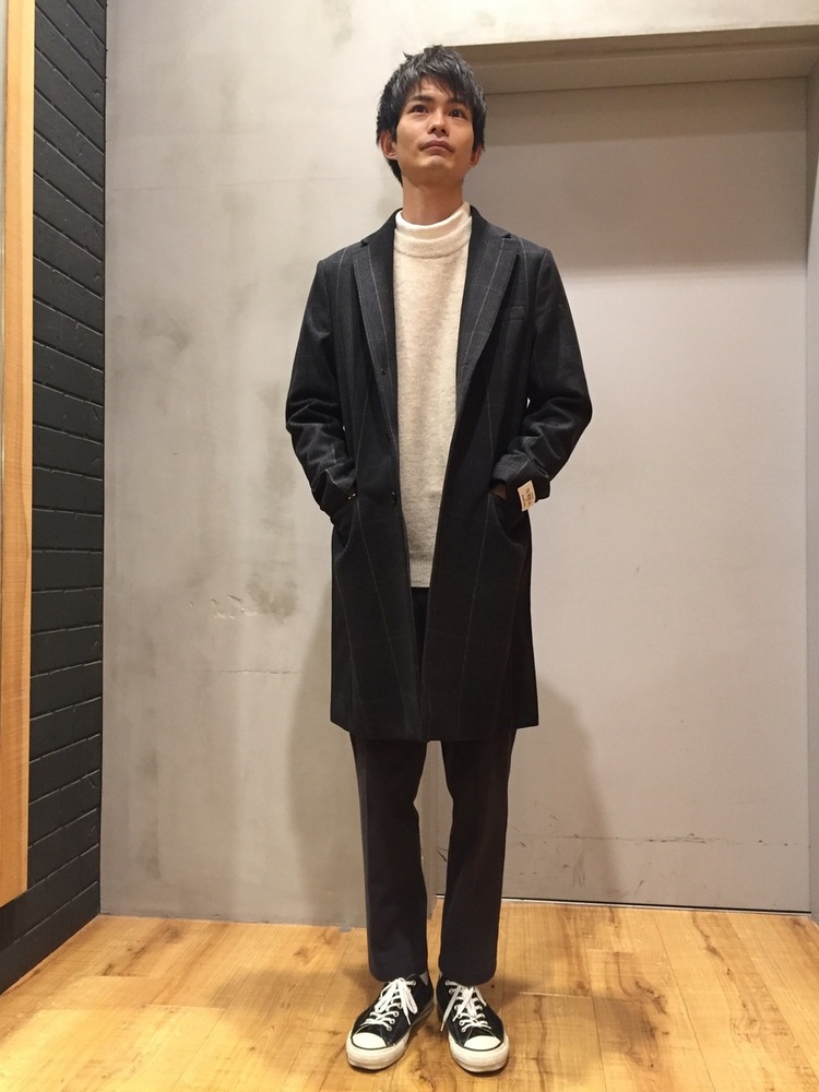 白ニットは冬の王道メンズコーデで女子ウケ抜群。さらに、チェスターコートを合わせることでスタイルアップを目指せます。あえてスニーカーにすることでこなれ感を演出するところもポイント。フォーマルな雰囲気でまとめたいときは革靴で合わせても素敵に仕上がりますよ。GLOBAL WORKの暖パンは生地感が好評なのでチェックしてみてください。