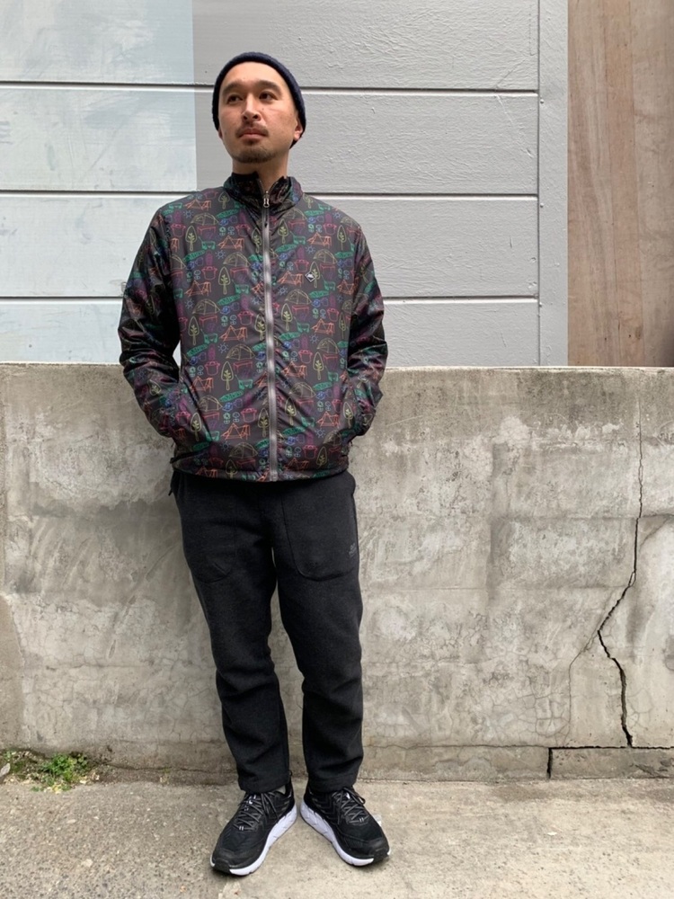 オーソドックスな暖パンに派手めながらのジャケットを合わせたメンズコーデです。シンプルだけど個性を出したいという方におすすめ。裾をしぼることもできる2WAY仕様になっているgym masterの暖パンは、裏地がフリース素材になっていることもポイント。秋冬はもちろん春にも着ることができる便利アイテムです。