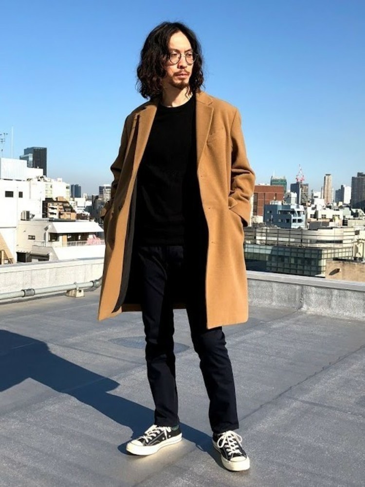 このコーディネートは、チェスターコート以外を黒でまとめることでかっこよく仕上がっています。シンプルでぴったりしすぎないnano・universeの暖パンを着用することで、全体的にすっきりとした印象のきれいめなメンズコーデになります。裏地が起毛になっていて、上品さと快適さを兼ね備えたテーパードシルエットの暖パンなので、持っておくと非常に便利です。