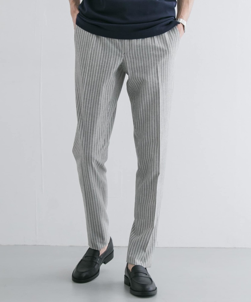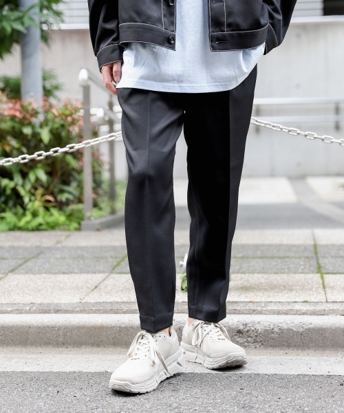 センタープレスがあることで、スタイリッシュできれい目な着こなしがしやすいアイテムです。ジャケットとやベストとも相性が良いので、クラシックファッションをする上でマストなアイテムになっています。