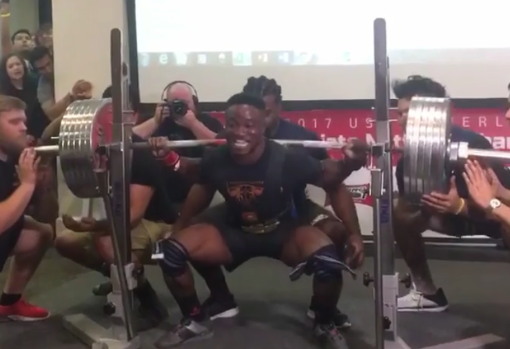 アメリカのラッセル・オリイ(Russel Orhii)氏が、2019年6月にスエーデンの大会で出した記録です。筋肉が凄いですね。この筋肉からのスクワットはとても見応えがあります。(bwt:82.25)