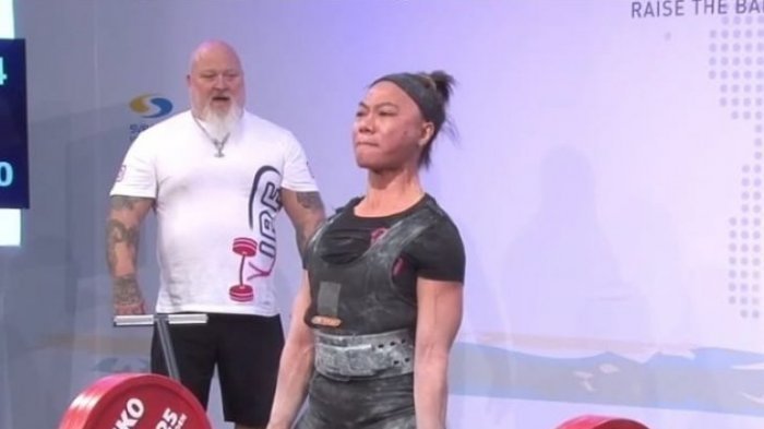 ウクライナのラリサ・ソロビオワ(Larysa Soloviova)氏が2019年11月にUAEの大会で出した記録です。男性顔負けの筋肉ですね。(bwt:62.50)