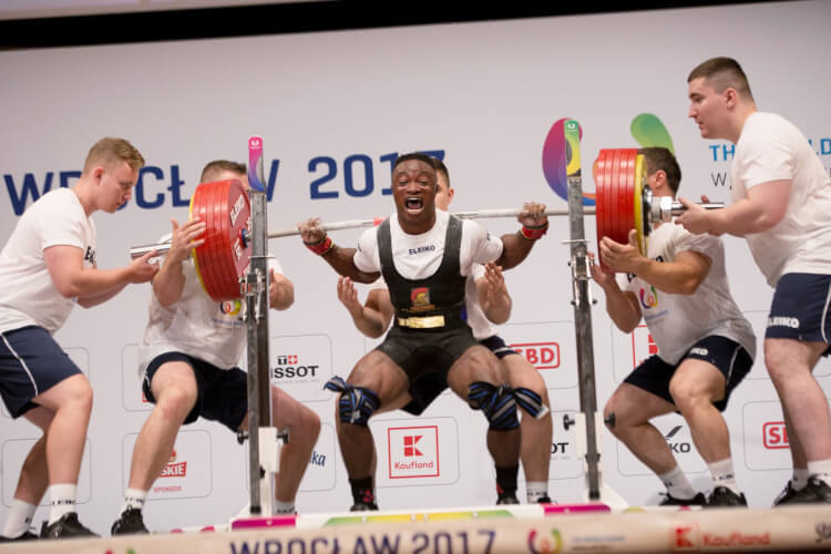 66kg級世界記録 263.0kg  チャールズ・オクポコ(アメリア)