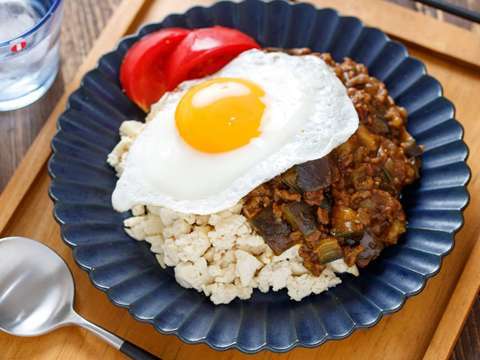 お米の代わりに「豆腐ライス」を使用したレシピです。豆腐は低カロリーなうえにタンパク質も豊富なため、ダイエット中の方にはもちろん、筋トレ中の方にもとってもおすすめ。またカレーの隠し味として昆布つゆを使用しているので、馴染みのある和風カレーに仕上がりますよ。