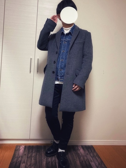 チェスターコート×ジーンズ×ジージャン×タートルT