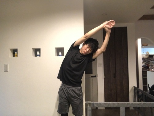 左右とも気持ちよく伸びていると感じる位置で、20秒間キープしましょう。2~3セットが目安になります。