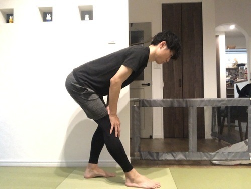 前傾姿勢のまま30秒間姿勢をキープします。左右とも1~2セット行うと良いでしょう。
