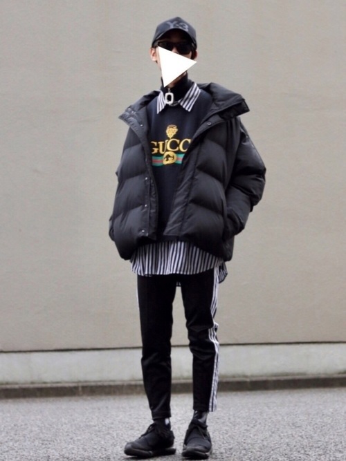 インナーや小物がハイブランドだと一気に高見えコーデに仕上がります。こちらのダウンジャケットは低価格ブランドのZARAです。しかしGUCCIのインナーとSaint Laurentのサングラス、Y-3のシューズといったほかアイテムをハイブランドで固めることで、高級感が演出できているのです。