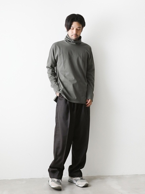 フィット感と肌触りのよさが実感できる「ビューティー&ユース」のタートルネック。特にTシャツタイプのタートルネックは、合わせるアイテムを選ばず、着回し力抜群のため、大人のメンズコーデにたくさん取り入れたくなる一着です。