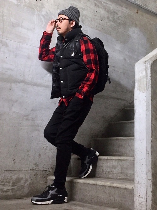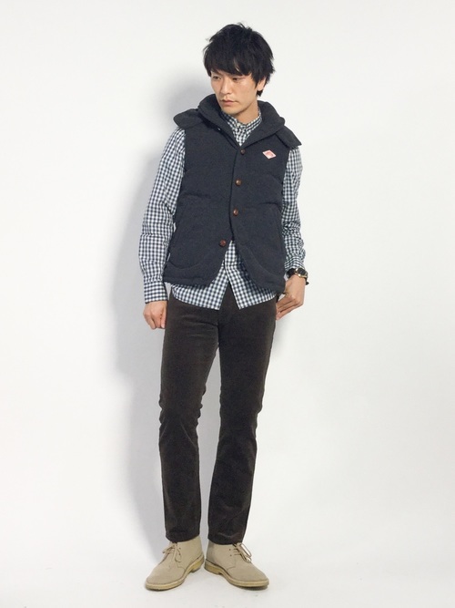 日本で1番有名と言ってもいセレクトショップである「BEAMS」のダウンベストコーデです。コーデュロイパンツとチェックシャツにダウンベストを合わせて秋らしい着こなしに。派手に見えがちなチェックシャツに同色系のダウンベストを羽織ることで落ちついた大人の装いになります。