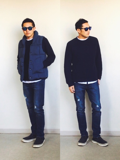 ベーシックでスタイリッシュさが特徴のブランド「CIAOPANIC」のダウンベストを使ったコーデです。全体的にブルー系統でまとめられたコーデに、ダウンベストを取り入れることでメリハリがつき立体感のある着こなしに。少し明るめのブルーのダウンベストを持ってきているところが抜群のセンスの良さです。