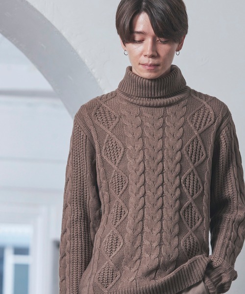 オーバーサイズのタートルネックニットはモードな雰囲気のコーデに欠かせない万能アイテム。ケーブル編みと上品に見えるシルエットが魅力的な一着です。色展開も豊富なので色々なコーデが楽しめるのも好都合。