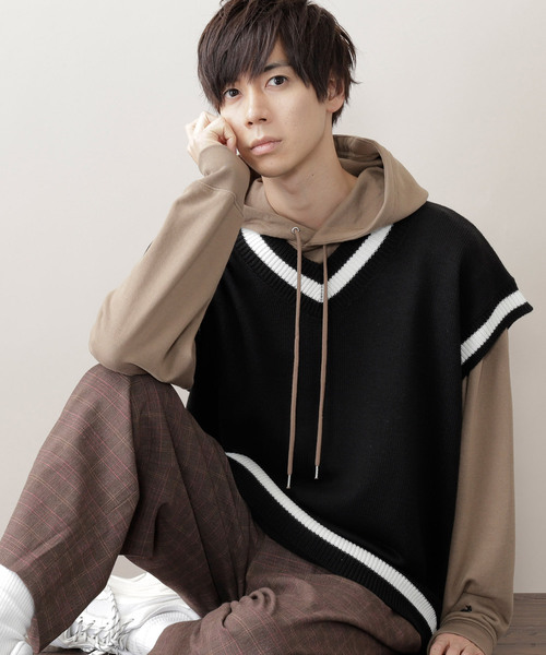レイヤードコーデで活躍するビッグシルエットのニットベストです。Vネック部分と袖にラインの入ったトレンドのチルデンベストは、今旬のコーデ作りには欠かせないアイテム。合わせるパンツも選ばない万能なシルエットなので、ぜひ一着持っておきたいニットです。