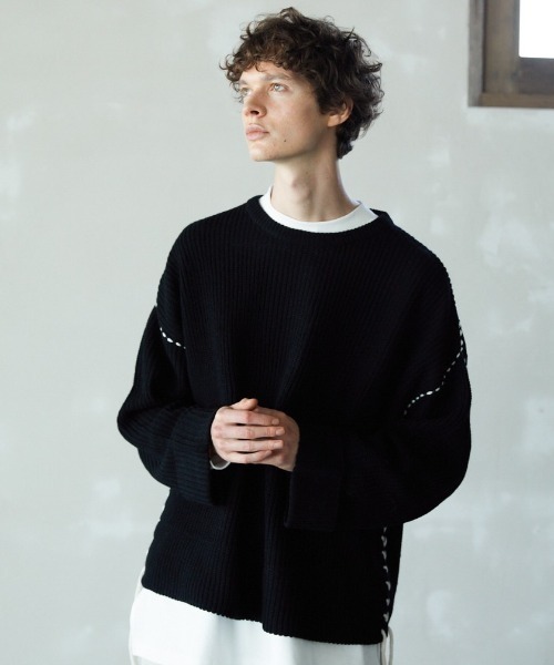 shiki tokyo オーバーサイズサイドレースステッチニット