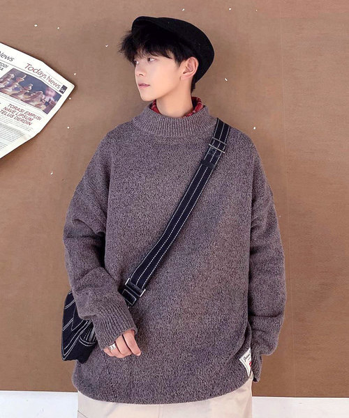 タートルネックよりも少しカジュアルながら、程よいきちんと感が残るモックネックのオーバーサイズニット。スキニーやワイドパンツなど、色々なパンツともバランスの取れる万能アイテムです。肩が落ちたデザインも今っぽさを醸し出す重要なポイント。