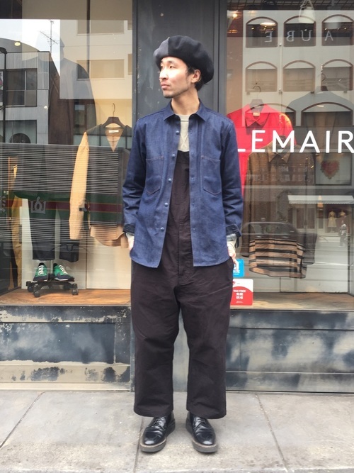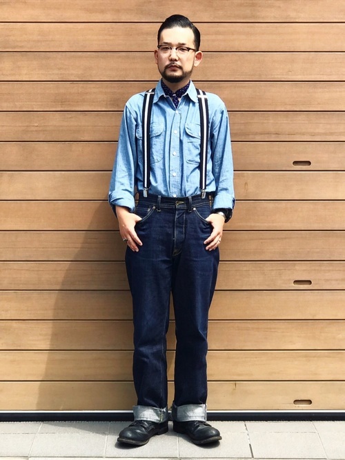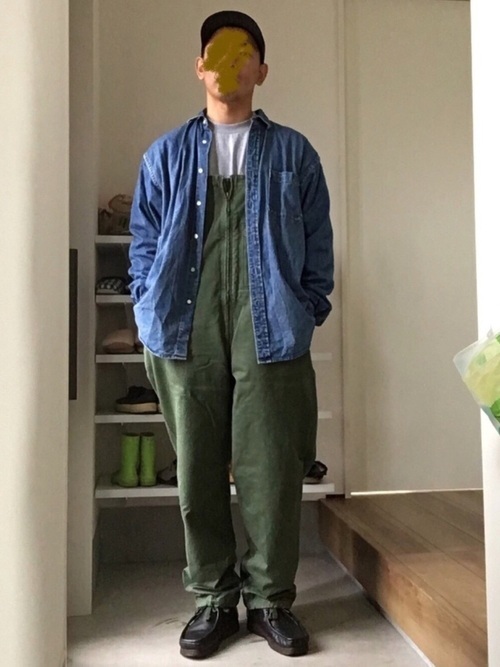 デニムシャツ×オーバーオール
