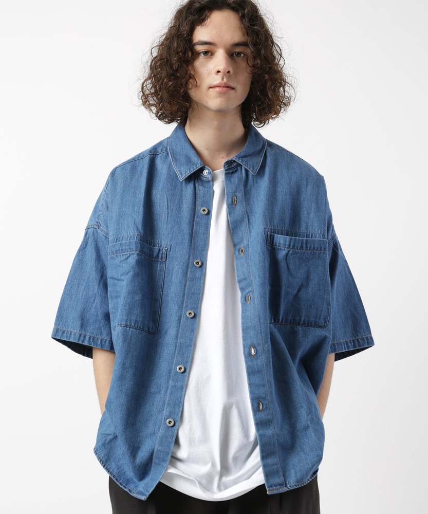 ヨークにタックを入れたディテールやビッグシルエットなどのワークウエアならではの動きやすさと、高いファッション性を併せ持ったショートスリーブデニムシャツ。さらりと一枚で着ても、ロングTシャツなどとのレイヤードスタイルでも活躍する着回しやすいアイテムです。