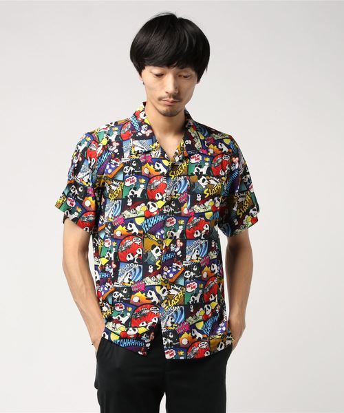 オリジナルキャラクターのパンダが人気のブランド・パンディエスタジャパン。こちらの総柄アロハシャツは、ブランドのキャラクターであるパンダがアメコミ風に描かれていて、見るからに遊び心溢れる1枚ですよ。