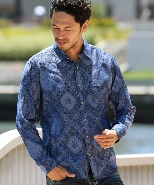 生地全体にペイズリーのバンダナ柄がプリントされたシャツになります。予めワンウォッシュされているので、買ったその日から着慣れた感のある着心地が楽しめますよ。カラーバリエーションも魅力的な1枚です。