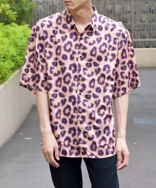 garsonwave(ギャルソンウェーブ) BIGシルエットヒョウ柄プリント半袖シャツ