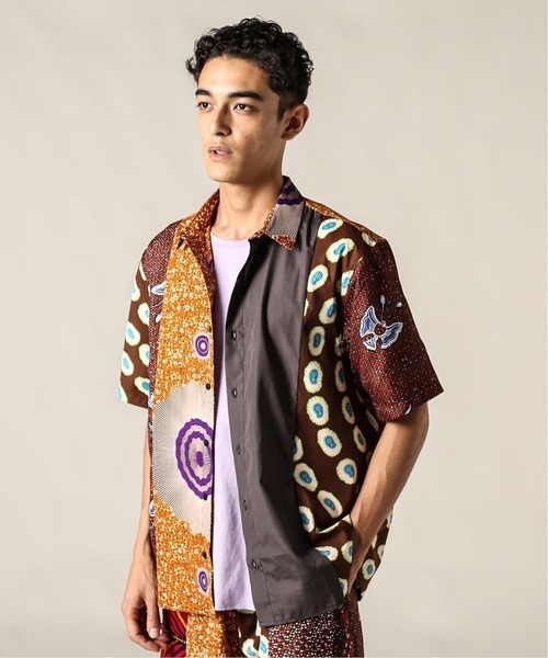 複数のボタニカル柄を組み合わせた、珍しいデザインの半袖シャツになります。素材に希少なアフリカンワックスを使用しており、存在感は申し分ありません。因みに、こちらのシャツはフランスのブランド・MSH(エム・エス・アッシュ)とのコラボ商品になります。