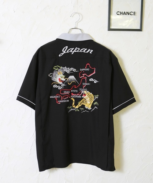 背中にスカジャンでおなじみの和柄が刺繍された、半袖ボーリングシャツになります。スカジャンやアメカジが好きな男性に人気で、ジーンズにも良く合いますよ。今流行りのビッグシルエットなので、トレンドな着こなしが楽しめる1枚です。