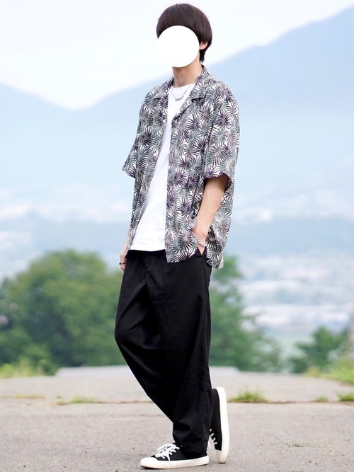 派手な柄シャツにはモノトーンなボトムスを合わせるのがセオリー