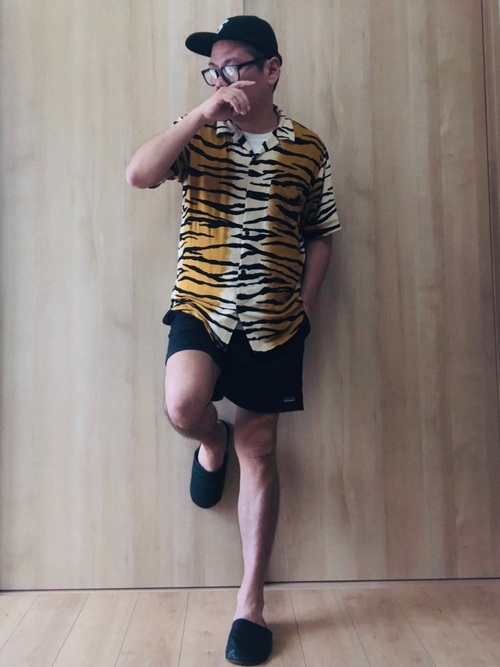 大胆な虎柄のシャツを、他のアイテムをモノトーンにすることで上手く着こなしてますね。ストリート系ハイブランドで知られるシュプリーム製のアイテムなだけに、街中で注目を浴びること間違いないでしょう。