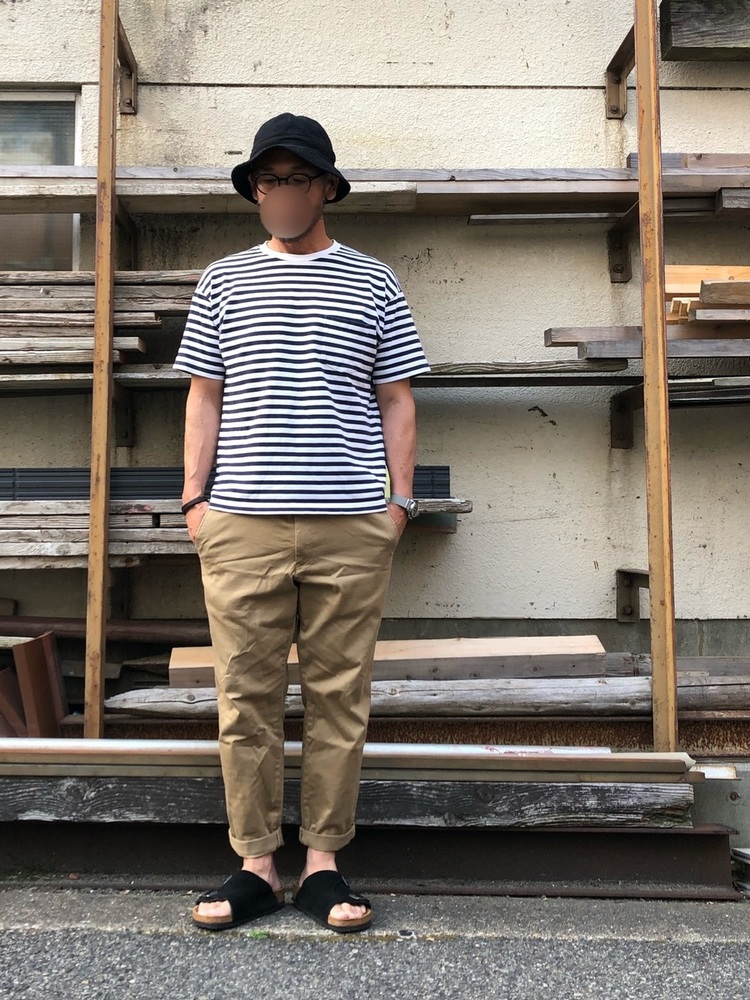 こちらはやや細めのボーダーTです。シルエットもベーシックで、シンプルだからこそいろいろなスタイルのメンズコーデに合わせやすく、ヘビロテ間違いなしのアイテム。