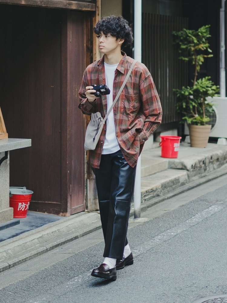 オーバーサイズTシャツ×柄シャツ