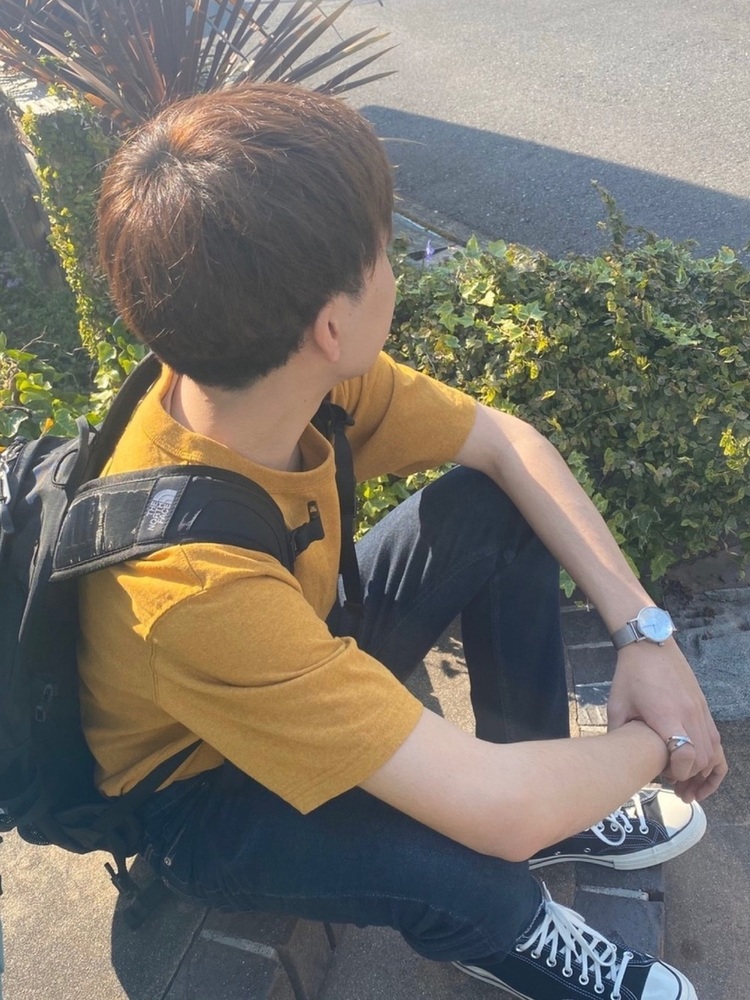シンプルな無地のクルーネックTシャツにビタミンカラーのカーディガンを合わせたコーデです。明るい色のアイテムにはシンプルなTシャツがベストマッチ。遊び心のあるおしゃれなメンズコーデになっています。