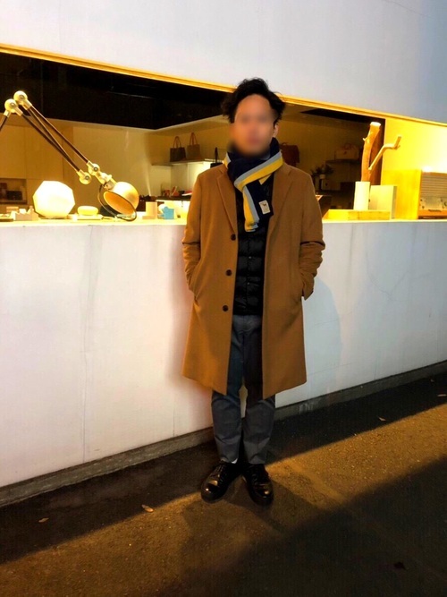 ブラック系インナーダウンをはじめ、ブラウン系コート以外をダークトーンでまとめたメンズコーデ。インナーダウンはボリュームが出て太ってみえるので嫌という人は、こちらのメンズコーデのようにブラックを選ぶと良いでしょう。色のおかげで細く見えます。