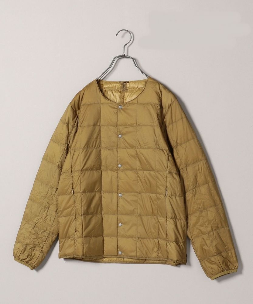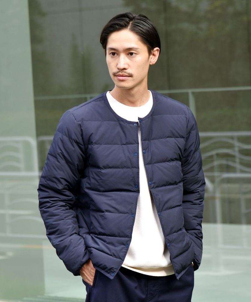 定番のカーディガンタイプのインナーダウンです。カラー展開も豊富なので、今持っているインナーダウンとは違った色にチャレンジすると着こなしの幅も広がります。シップスとタイオンのダブルネームの収納袋もかっこいいですよね。