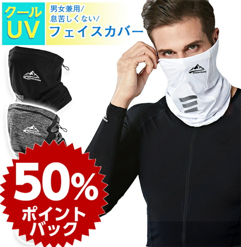 続いてのグッズは、顔、デコルテ、首後ろまでを強い日差しからしっかりとガードしてくれるフェイスカバーです。UVカット率は98%と非常に高く、夏の紫外線対策に欠かせないアイテムです。通気性に優れ伸縮性もよいため、呼吸がしやすく窮屈感を感じない点が魅力となっています。