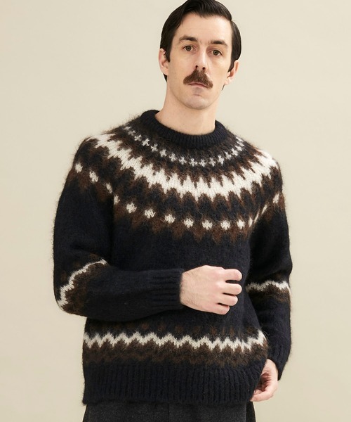 人気のノルディック柄ニットは、稀少なベビーアルパカ、キッドモヘア、ウールを贅沢にブレンドした糸を編み立てたニット。後工程で洗いのみで起毛を施しているので生地を傷めず、選び抜かれた天然素材の柔らかな風合いが特徴です。魅力的な表情と編み地がコーデに映える一枚です。