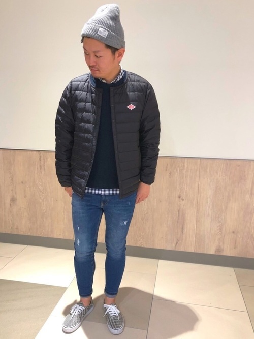 ダントンインナーダウンジャケット×ニットキャップコーデ