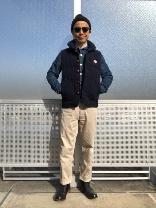 ダントンウールモッサダウンベスト×チノパンツコーデ