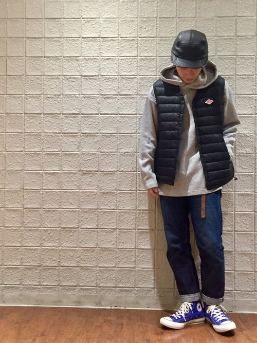 ダントンVネックインナーダウンベスト×パーカーコーデ