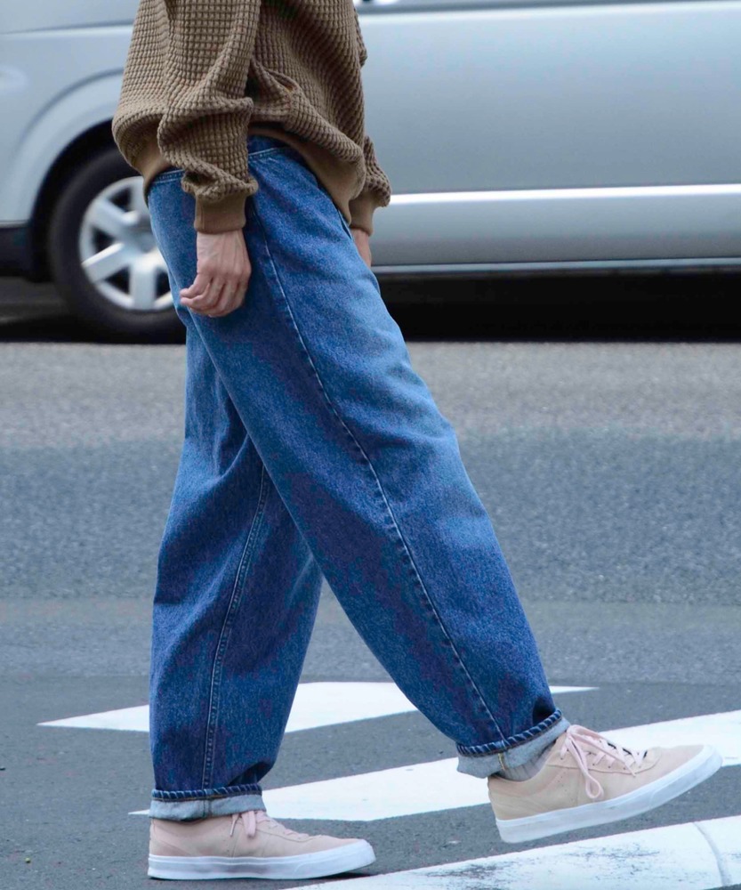 ルーズなビッグシルエットが特徴的な、ジョンブルの「ルーズジーンズ」は、ゆったりとした穿き心地とシルエットが人気。5ポケットで、セルヴィッチデニムの生地を採用したデニムファンも納得のアイテムです。ゆったり×ゆったりの着こなしでルーズな着こなしも良し、Aラインを意識した着こなしも良し、穿くだけでリラックスコーデが簡単に作れますよ。