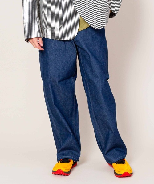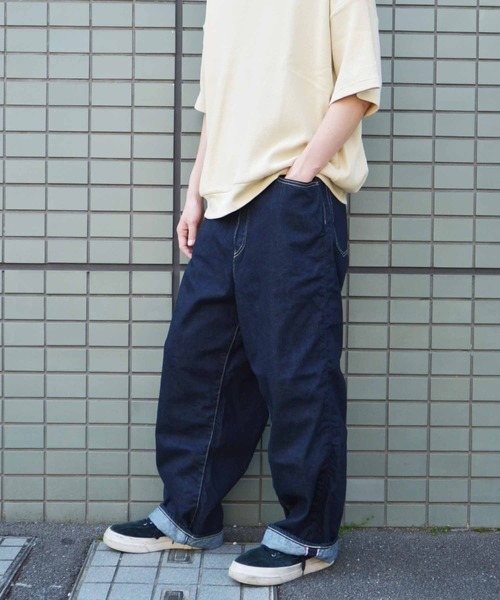 ジョンブルの「ビッグジーンズ」は、太いストレートラインが特徴のデザイン。ウエスト部分にヒモがついていて、絞ってウエストの調整ができます。男女兼用なので、カップル同士のコーデもOK。長めの裾は、ロールアップして着こなすのがおすすめです。デニムブランドでも有名なセルヴィッチデニムの生地で、季節を問わず着られるのもうれしいポイントですよ。