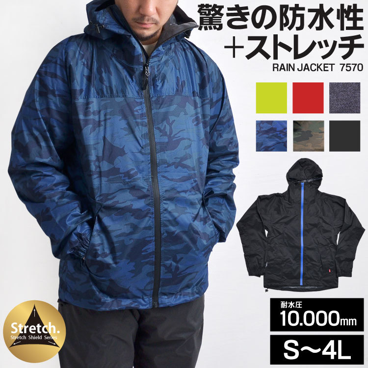 カジメイクは日本有数の生産量を誇るレインウエアメーカーです。こちらの商品は、耐水圧10,00mm、透湿度5,000g/㎡・24hrという高い防水性と透湿性に加え、薄手でストレッチ性のある生地でできているため動きやすさがバツグンです。背面には光に当たると反射するリフレクターがついており、視界の悪い天候や夜でも安全です。