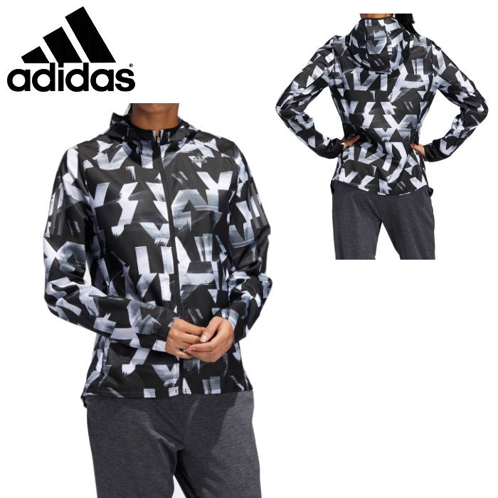 こちらはグラフィックデザインがカッコいい、アディダスのランニングジャケットです。通気性と撥水性が高く、軽い小雨や肌寒い日のランニングにおすすめです。柔らかい薄手の生地で出来ており、コンパクトに収納することもできます。