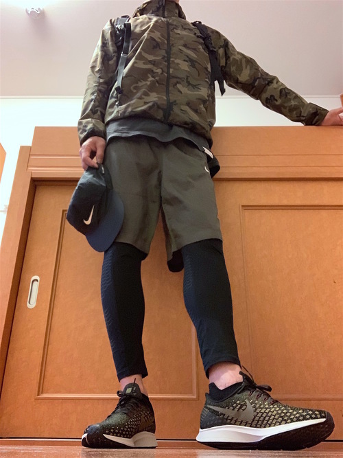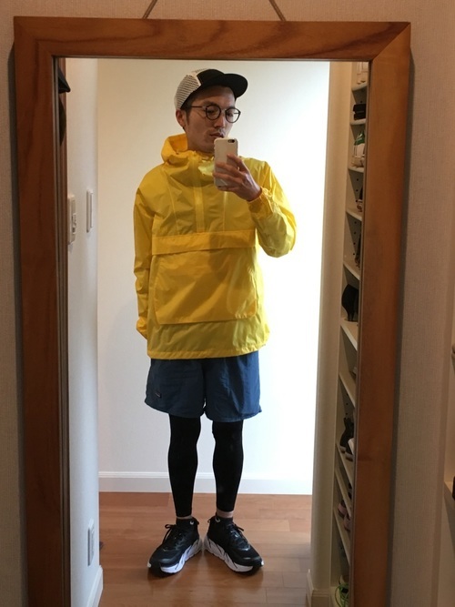 2種類のゴアテックスを組み合わせた超軽量マウンテンパーカーを合わせたランニングスタイルです。ボトムスはショートパンツにランニングスパッツを合わせた走りやすいコーディネートとなっています。
