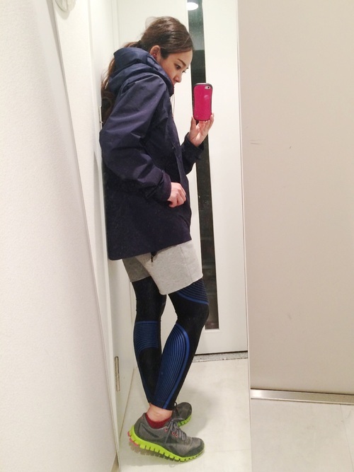 マウンテンパーカー×ハーフパンツ×スパッツ