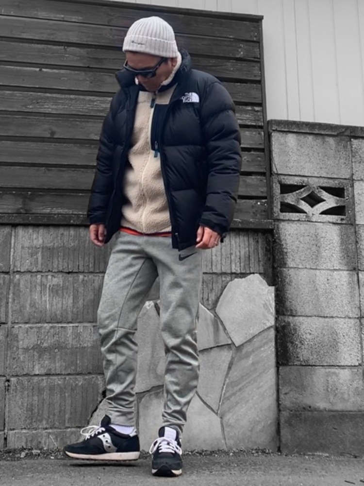 ダウンのインナーにパタゴニアのレトロXベストを取り入れています。アウターの下にレイヤードする場合は、こちらのようにジャストサイズのものを選ぶと、着膨れせず、すっきりとした着こなしになります。テーパードパンツを合わせてスポーティーなスタイルに。