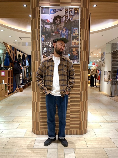 秋の定番アイテムであるブルゾンとグラミチのデニムパンツを合わせたアメカジコーデ。ブルゾンとデニムパンツのカラーを合わせることで、全体に統一感を出しています。また、ロールアップにした裾がコーデのワンポイントとなっています。