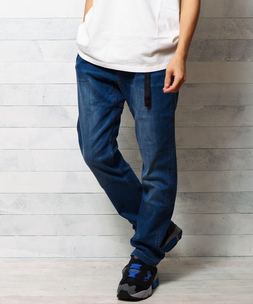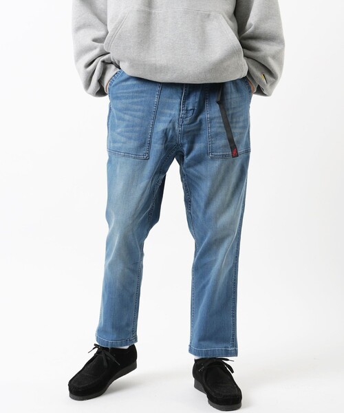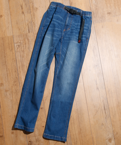 グラミチを堪能できるデニムエスティーパンツ。デニムエスティーパンツの素材にはコットン99%にポリウレタン1%を混紡したストレッチデニムが採用されています。そのため、伸縮性が高く動きにくさの心配はありません。履きこめば履きこむほど、色落ちして自分だけのジーンズになります。