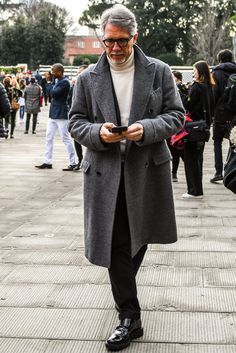 また、ウールブレンドのグレーチェスターコートを着用し、生地によるマイルド感を出してあげてもモダンな着こなしになるので参考にしてみてくださいね。