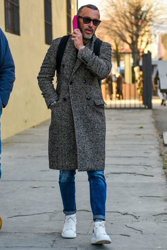 きれいめチェスターコートにはカジュアルアイテムを